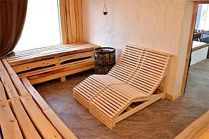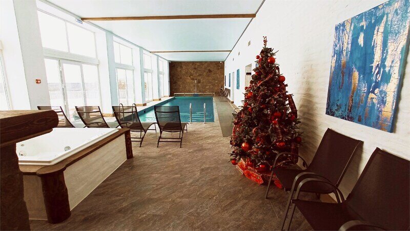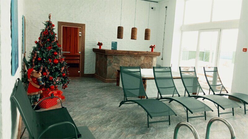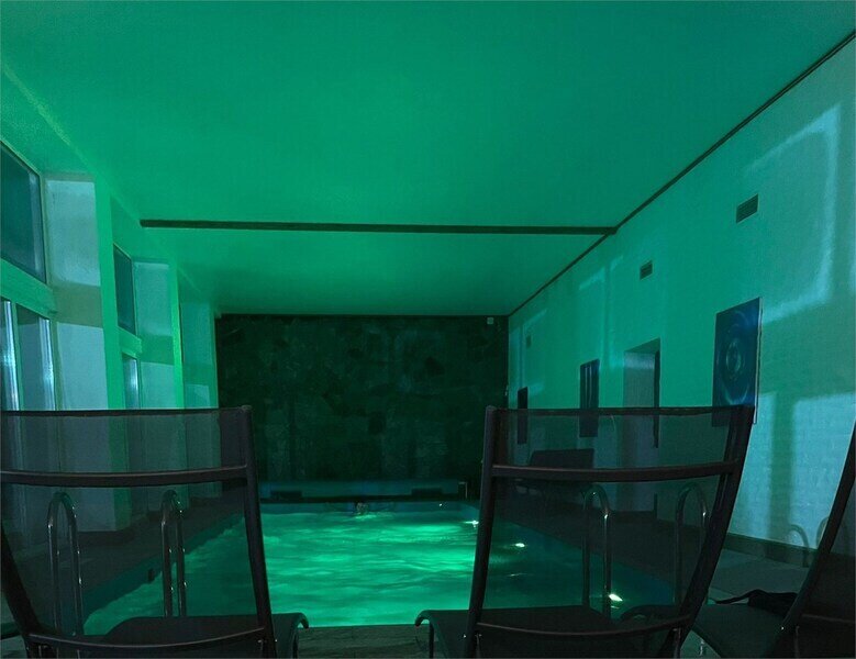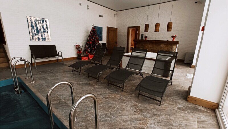 Тип бассейна: крытый бассейнРядом с бассейном: шезлонгиВ новой гостинице глэмпинга бассейн с аэромассажным лежаком — такой вид аттракциона, который обеспечивает подводный массаж тела, путем выхода через само плато воздуха, что, в конечном счете, создает миллионы пузырьков. Подобным эффектом возможно делать легкий массаж и насыщать кожный покров кислородом, а это очень полезно; противоток — один из самых применяемых аттракционов для любителей плавать. Это тот случай, когда плавать в бассейне можно десятки километров в день. Особенностью противотока является то, что движение воды создается в верхнем слое воды; сауна с панорамным окном, джакузи (Jacuzzi Aura Plus Corian) с гидромассажем.