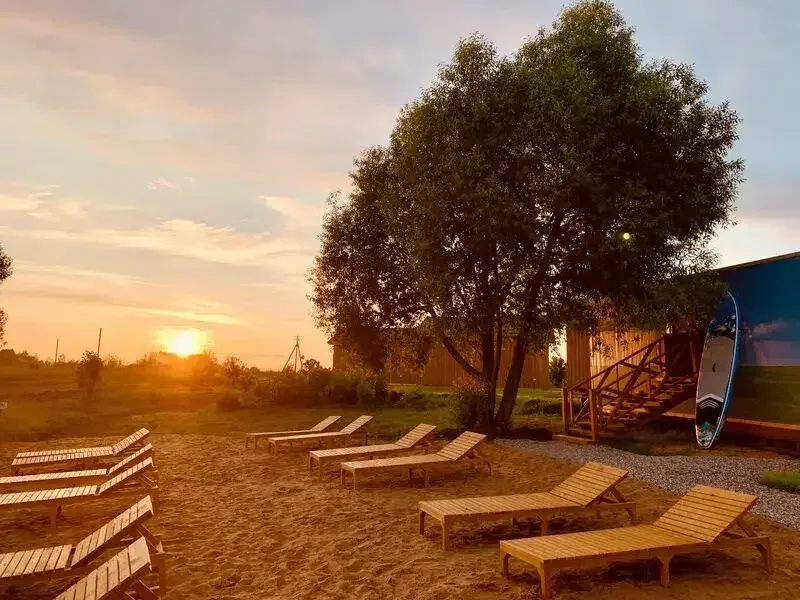 Но кроме умиротворяющего отдыха в уютных номерах, глэмпинг также готов предложить шатёр-баню, альпийский чан, собственный пляж, кафе, спортивные площадки, мангал, детскую площадку, прокат катамаранов, SUP-бордов, лодок, велосипедов и многое другое! Есть специальный VIP-дом для проведения вечеринок.