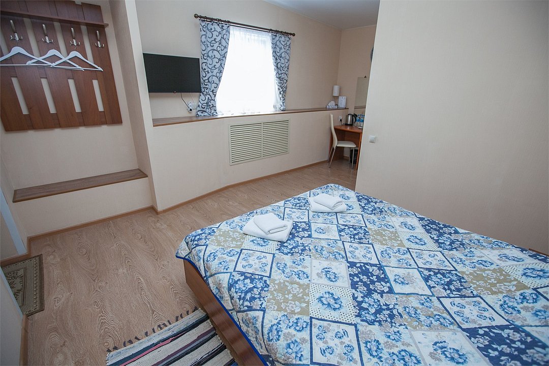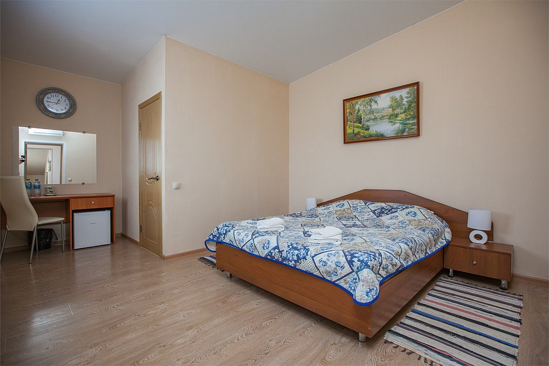 Стандартный номер просторных размеров, выполнен в классическом стиле с большой кроватью и видом во двор.Услуги и удобства