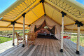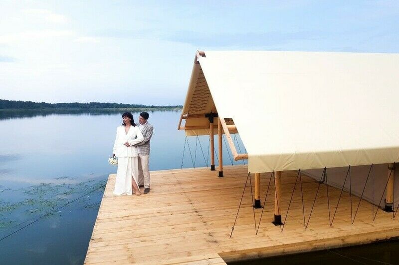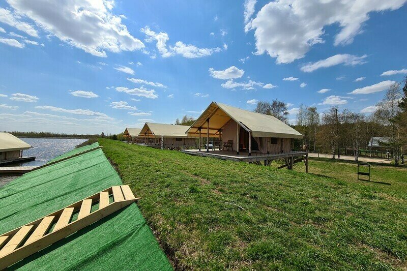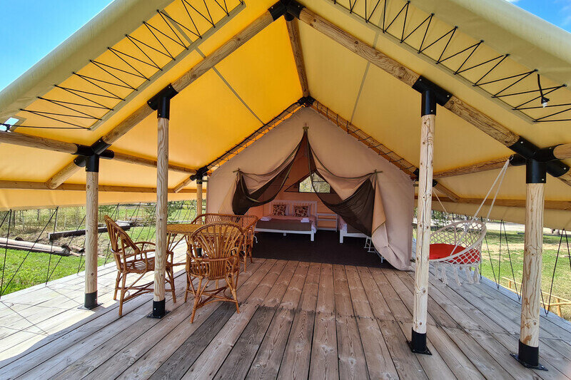Палатка 4*4 с верандой , со всеми удобствами внутри. Для комфорта и тепла оборудована конвекторами. Отдельный санитарный блок с личным санузлом и душем. Организованная зона отдыха с мангалами.