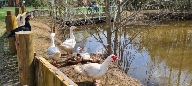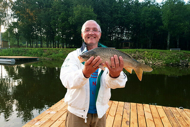 На территории комплекса есть зарыбленные пруды, благодаря которым процесс рыбалки может стать увлекательным для всей семьи. Удобные мостки, предоставляемые в аренду удочки и садки, красивая природа — всё располагает к приятному отдыху.
