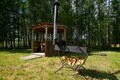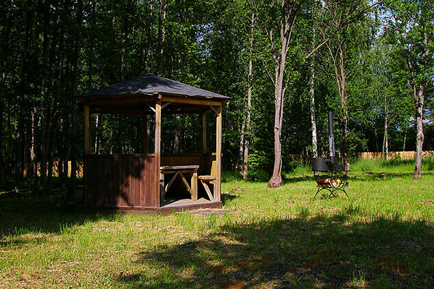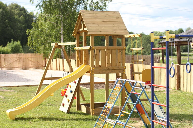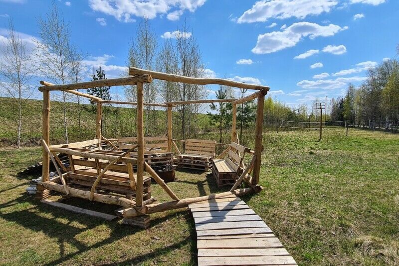 Каждый гость сможет найти себе занятие по душе. Для активного отдыха предлагаются услуги проката и игры на свежем воздухе. Для приятного общения есть благоустроенные беседки в лесной зоне в и на берегу водоема. Для маленьких гостей оборудована детская площадка на территории.