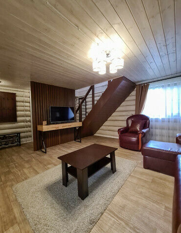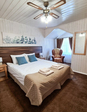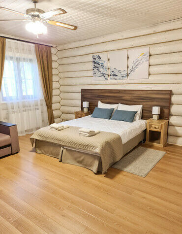 Просторный светлый номер с прихожей и ванной комнатой. В стоимость проживания включены пользование беседкой с мангалом и кухней-столовой.