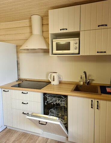 Уютный светлый номер с прихожей и ванной комнатой. В стоимость проживания включены пользование беседкой с мангалом и кухней-столовой.