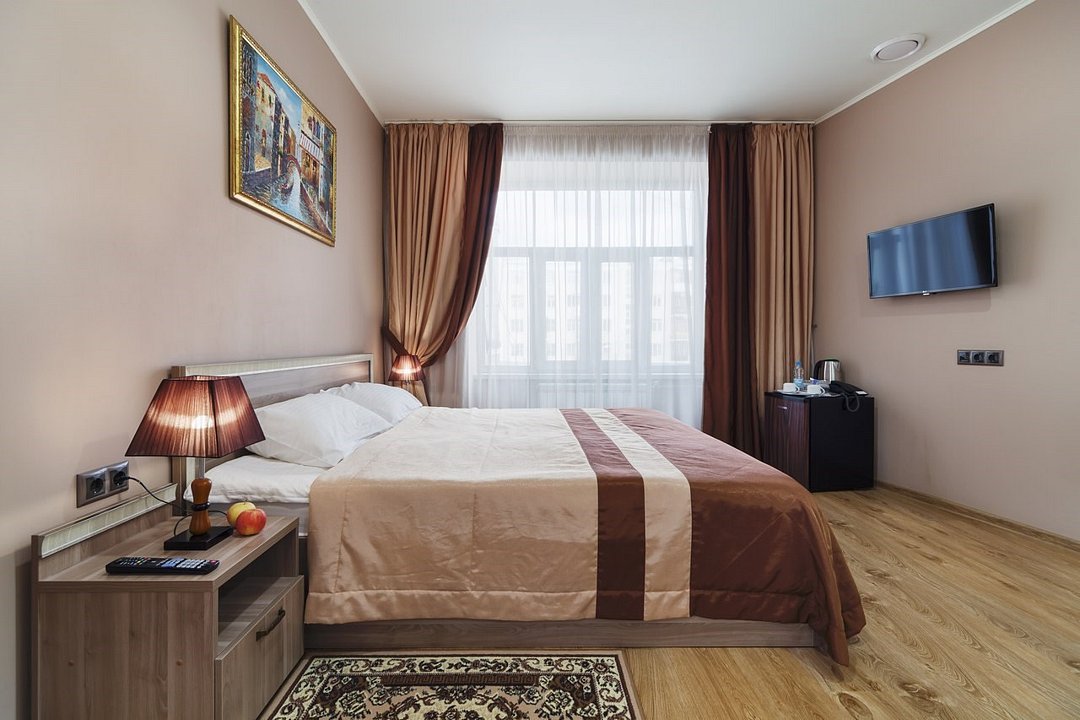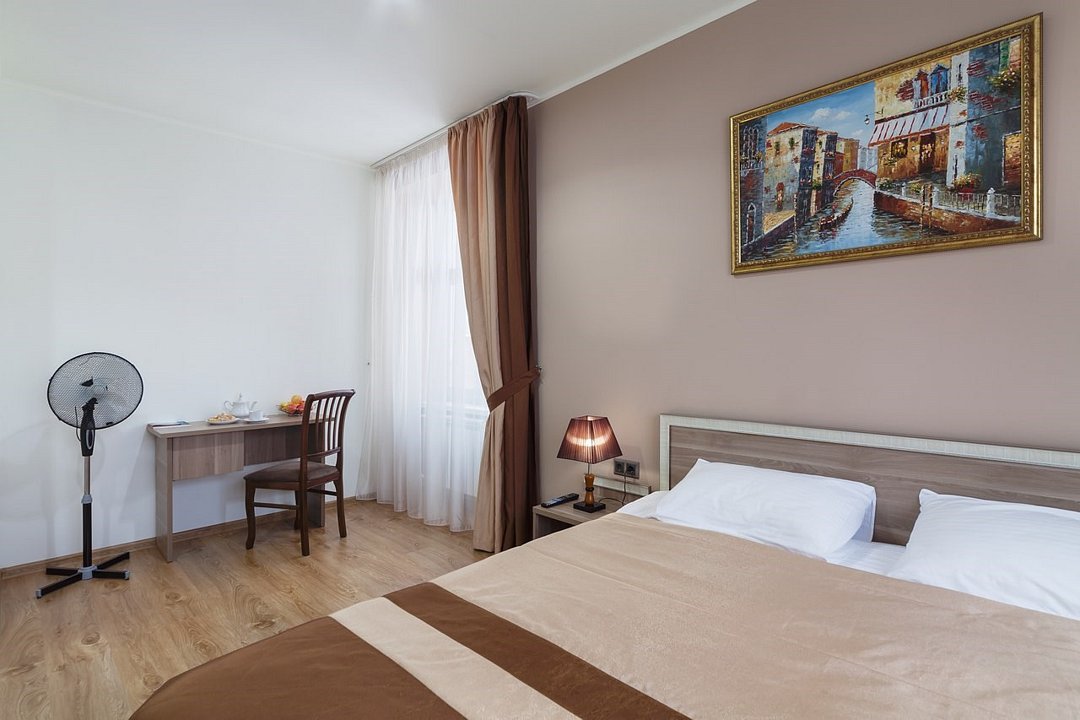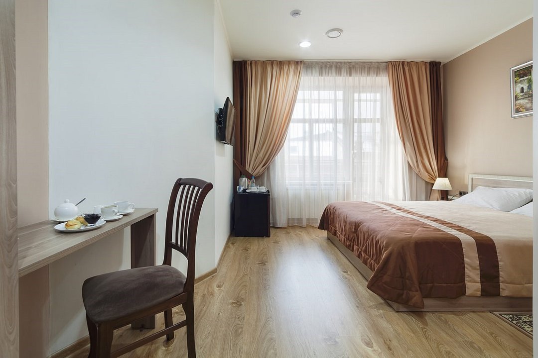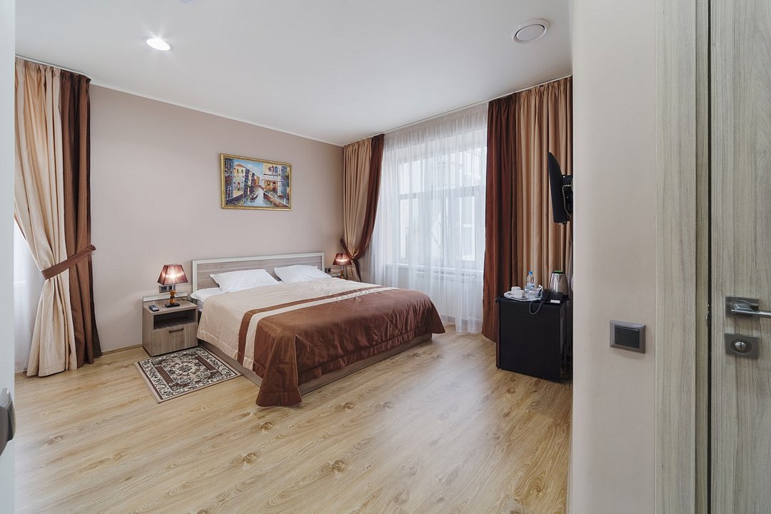 Вас будут ждать 25 современных и комфортабельных номеров, оформленных в классическом стиле, интерьер которых сочетает в себе аристократизм и сдержанность, создавая атмосферу уюта и элегантности.