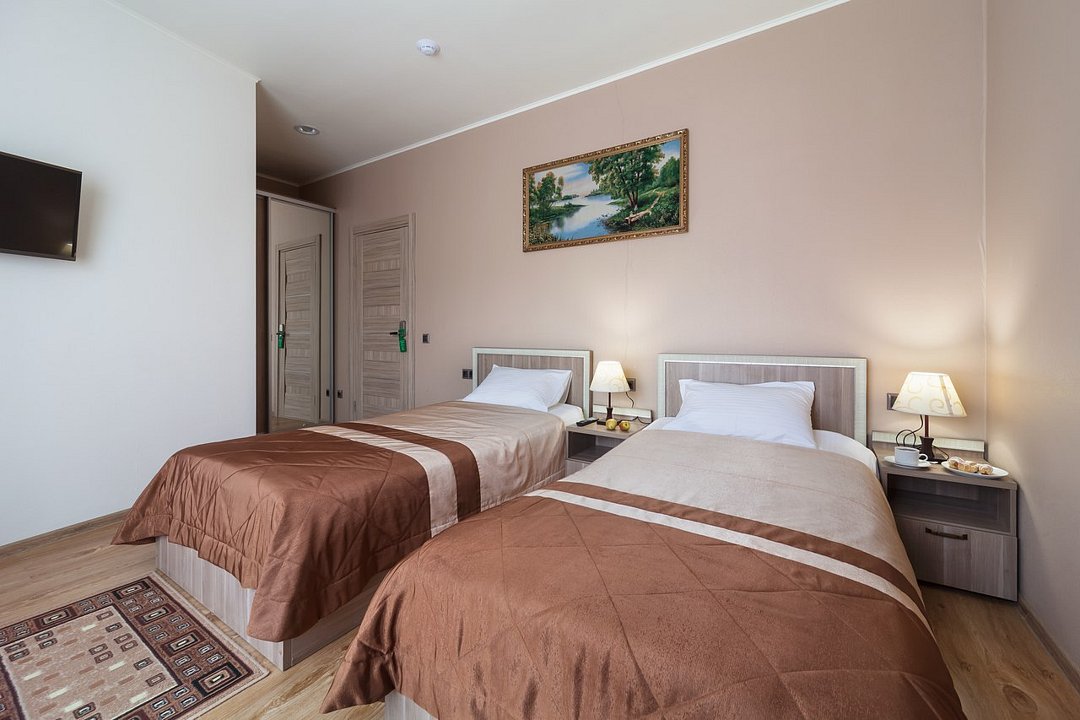 Номер с двумя односпальными раздельными кроватями,отличное решение для размещения двух гостей.Услуги и удобства