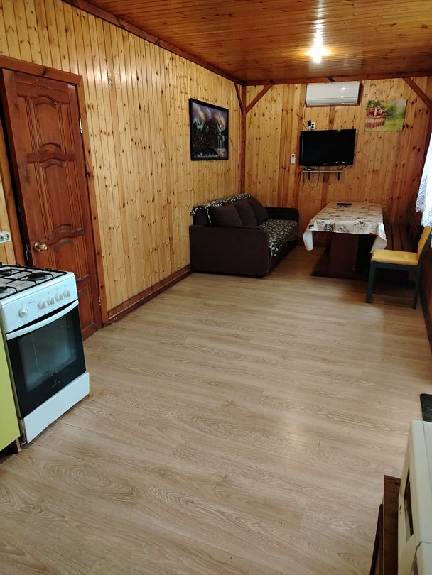 Компактный домик с одной спальней и гостиной. Дом оборудован кондиционер, горячего и холодного водоснабжения, канализацией, холодильник, посуда, чайник, телевизор и обеденный стол. Также дом имеет одну ванную комнату, оборудованную душевой кабиной, раковиной, унитазом и всеми необходимыми умывальными принадлежностями.
