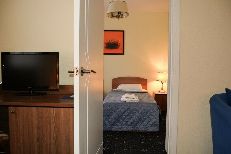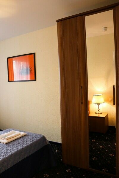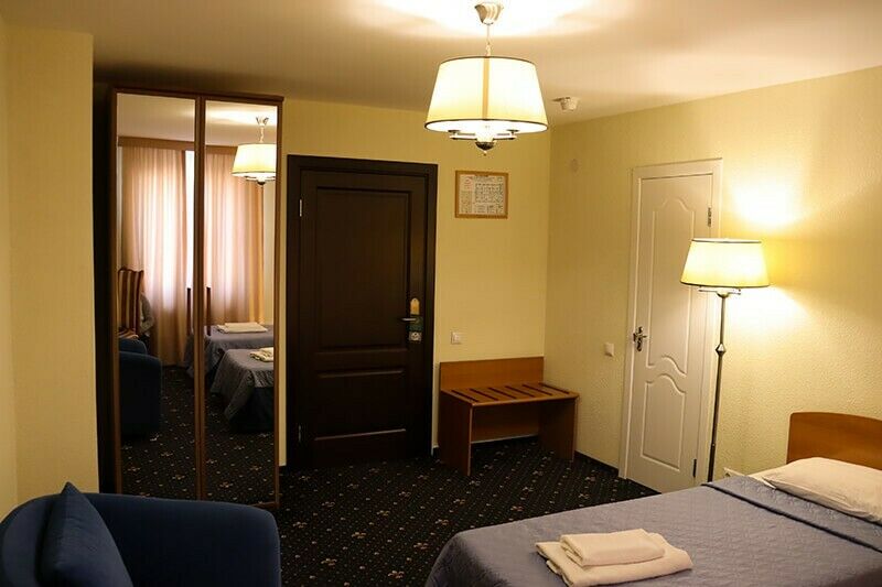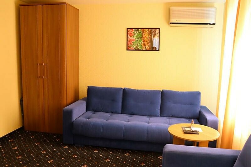 Улучшенный двухместный номер (двухкомнатный), площадь гостинной 16,6кв.м., спальни 11,9кв.м., ванной 3,86м.кв, на окнах москитная сетка.