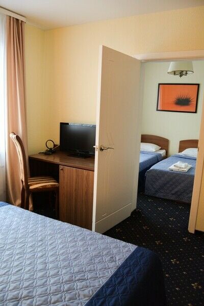 Улучшенный двухместный номер (двухкомнатный), площадь гостинной 13,7кв.м., спальни 10,5кв.м., ванной 3,7м.кв, на окнах москитная сетка.