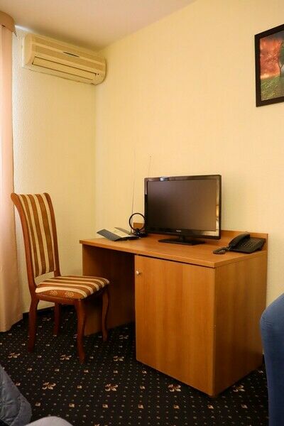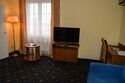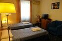 В номере две односпальные кровати, шифоньер, стол для сумок, прикроватные тумбочки, письменный стол, кресло, TV, мини-бар, торшер, настольные лампы, сплит-система, телефон.