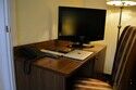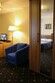 В номере двуспальная кровать, шифоньер, прикроватные тумбочки, письменный стол, стул, кресло, TV, мини-бар, торшер, настольные лампы, сплит-система, телефон.