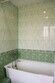 В ванной: ванна, унитаз, раковина, коврик для ног.