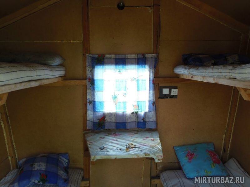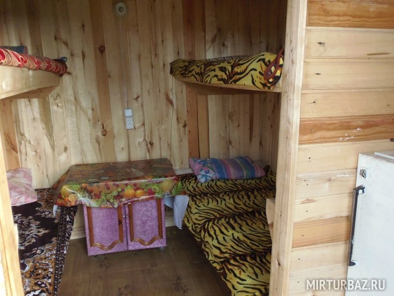 К вашим услугам простые домики типа купе, с размещением от 2х до 4х человек, с мягкими кроватями, телевизорами, холодильниками, имеются обогреватели. Предоставляются комплекты постельного белья за отдельную плату. Возможна установка палаток около домиков, здесь же можно оставить свою машину. Около домиков есть навесы со столиками и скамейки,где можно расположиться компанией, предусмотрена сушка купальных принадлежностей.