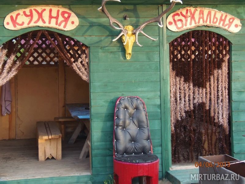 Во дворе имеются мангалы, дрова к которым идут бесплатно. Имеется гриль, под заказ можно пожарить цыплят. Общая летняя кухня, 2 плиты, холодильник, микроволновка, умывальники, музыкальный центр, стиральная машина. На территории базы 2 летних душа и 2 туалета.