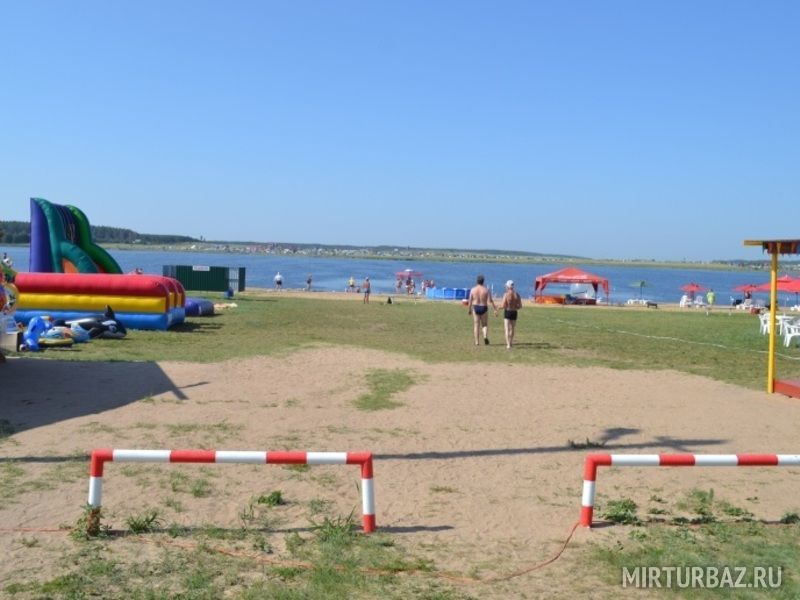На песчаном пляже имеется вся необходимая инфраструктура и инвентарь для отдыха и развлечений.