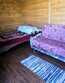Большая кровать, диван, кресло-кровать, телевизор, вентилятор, кухонная зона, посуда, плитка, чайник, микроволновая печь, холодильник, горячая/холодная вода, душевая, туалет, на мансарде большой стол, лавочки).