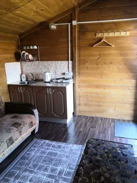 В домиках чисто, за 6 тыс/сутки есть всё необходимое для проживания с детьми.НедостаткиКак оказалось по приезду на базу, что сезон закончился, все кафе были закрыты, хорошо, что мы были готовы к самостоятельному приготовлению еды.