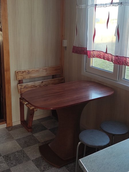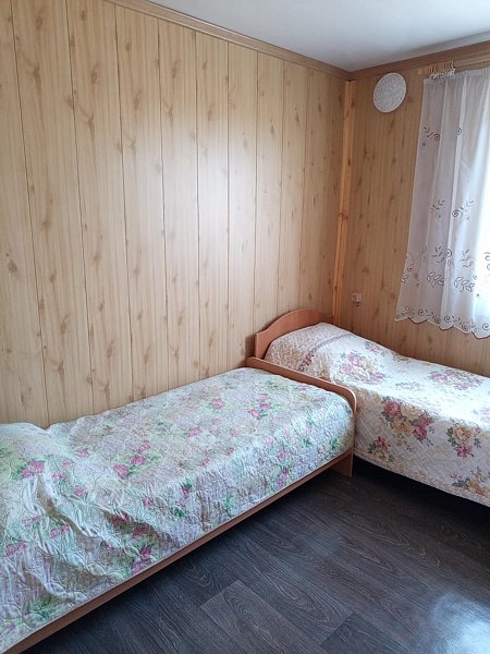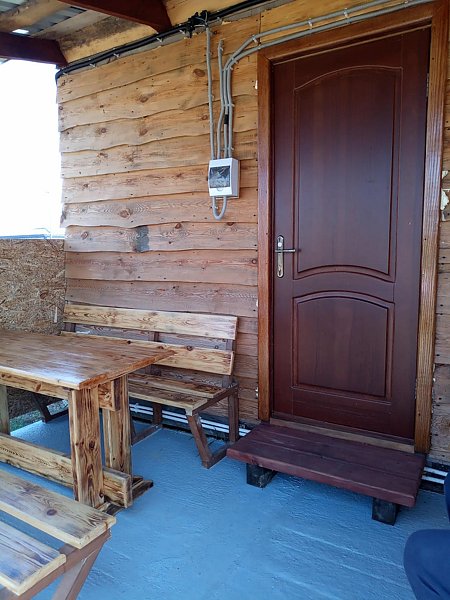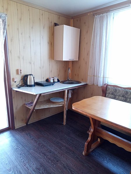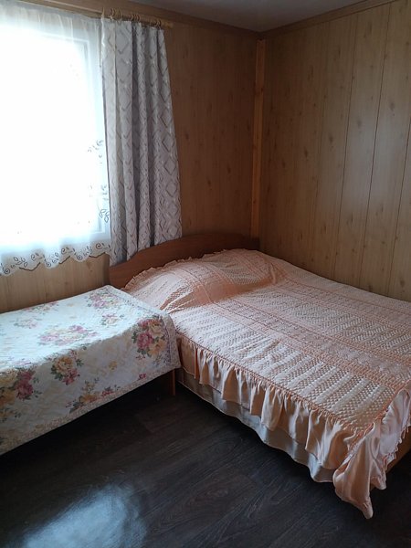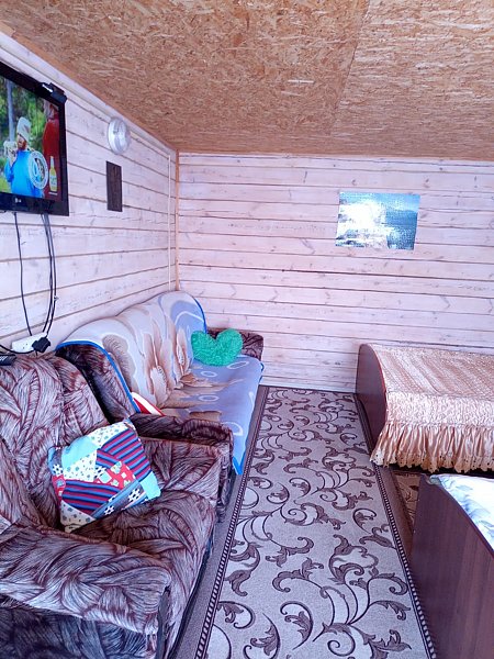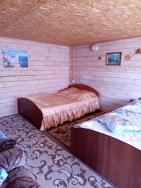 На территории в 20 соток расположены комфортабельные домики на четырёх и шестерых гостей; с кухней, душем и всем необходимым для комфортного проживания. Есть мангальная зона.