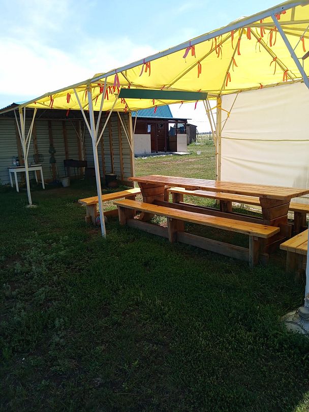 К домику пристроена беседка. В доме есть душ, кухня, телевизор.