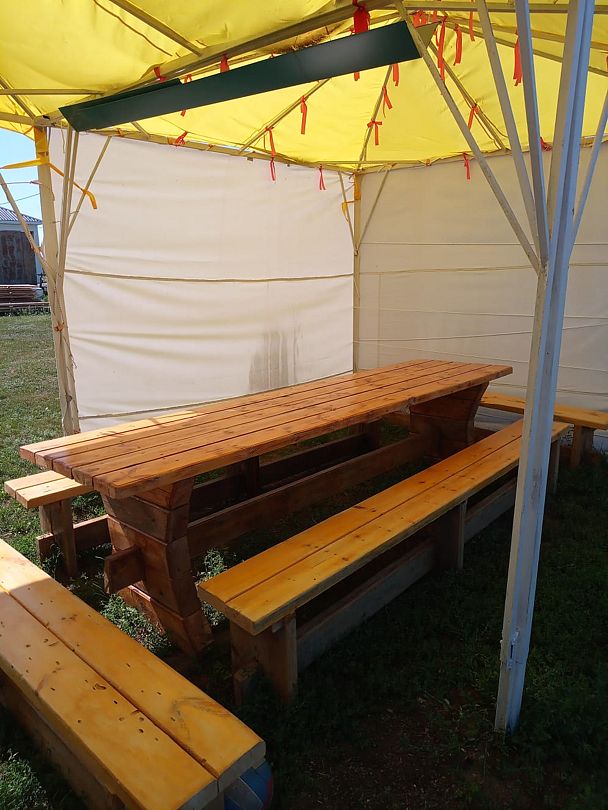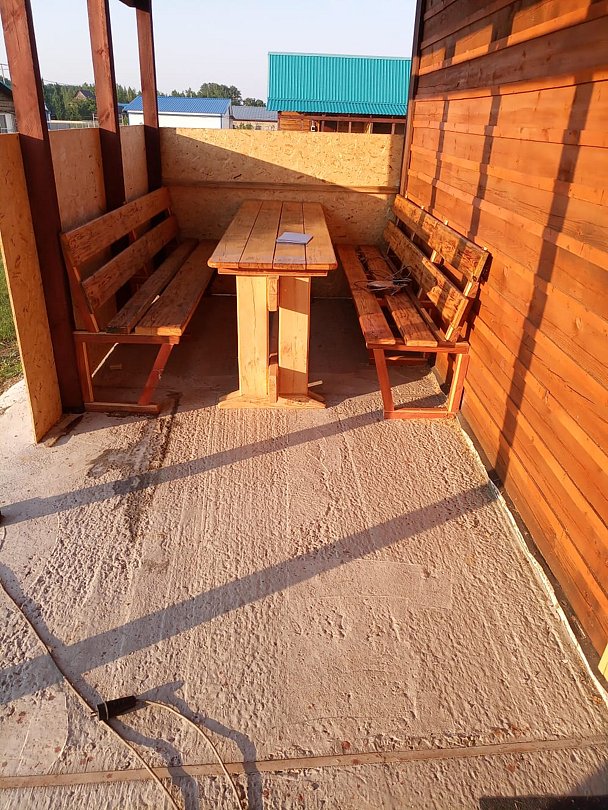 Домики оснащены беседкой, где вы сможете проводить уютные вечера, любуясь природой.