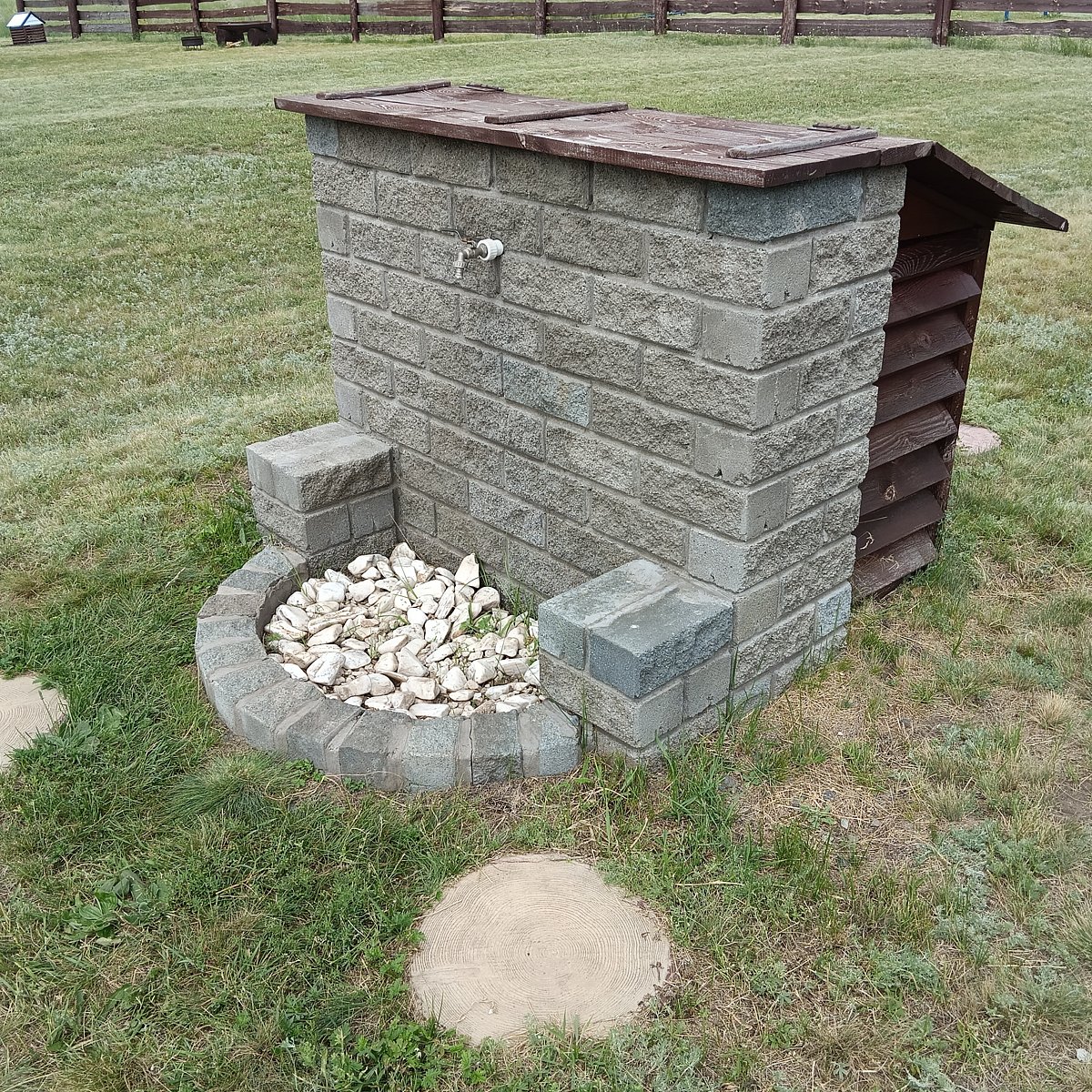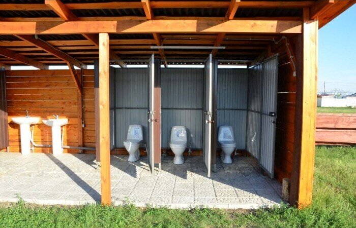 На территории базы есть санузел с душами и унитазами. Пользоваться могут им только гости базы «Радуга».