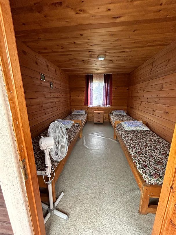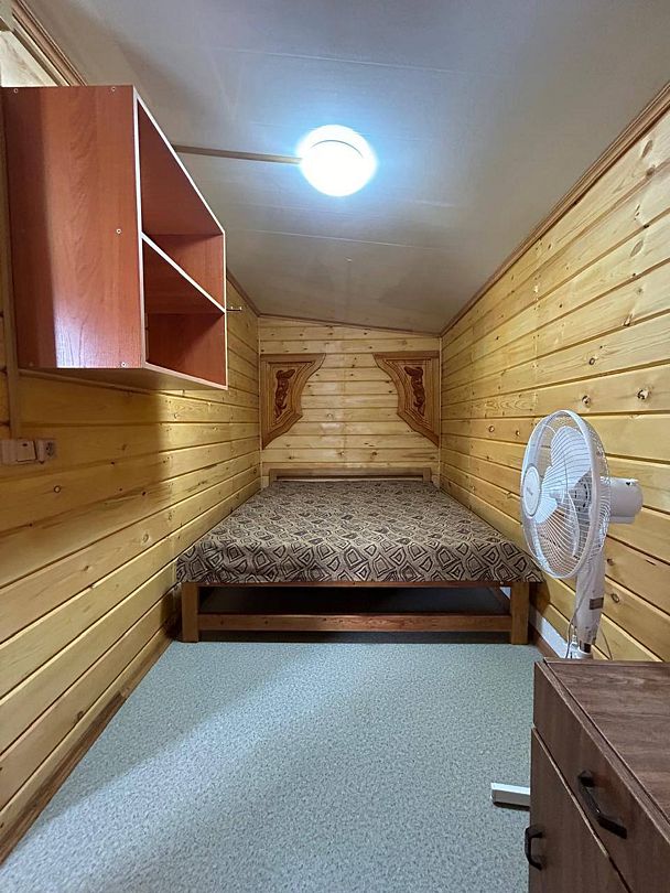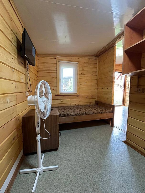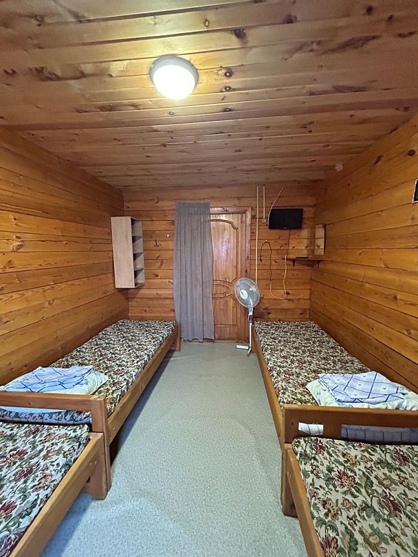 - Номера с 4-местным размещением (оснащены: тумбочка, вешалка, полки для вещей, табуреты, зеркало, телевизор, веранда, вентилятор большой напольный.