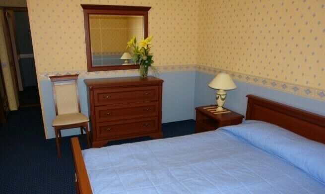 Двухкомнатный номер с гостиной и спальней. В номере: телевизор, холодильник, мягкая мебель, санузел с душевой кабиной, фен. Дополнительное место – раскладывающийся диван.