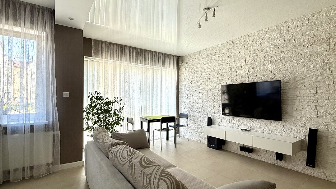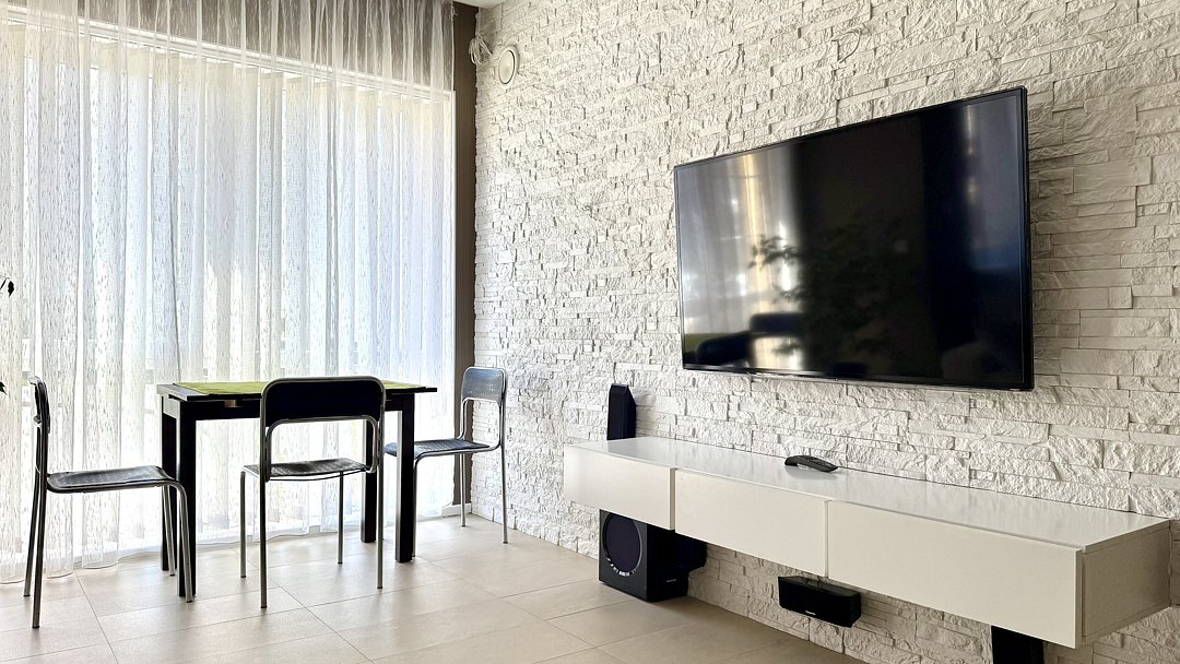 Уютная двухкомнатная квартира в новом доме, всего в 5 минутах ходьбы от остановки общественного транспорта до моря.