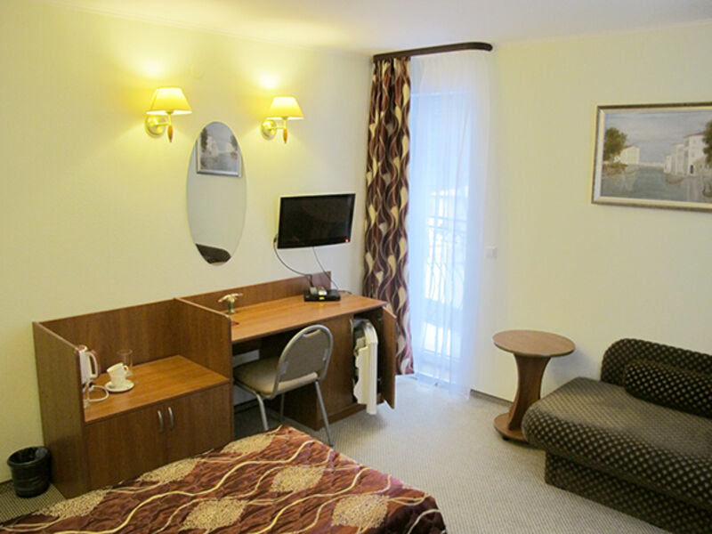 нояб. 2020 г.Чудесная домашняя атмосфера.Очень доброжелательный персонал, начиная от процесса бронирования (бронировали напрямую, встречи (организовали трансфер) и проживания. Выбрали двухкомнатный номер и не пожалели. Диван в гостиной, правда, уже явно поживший, но в целом всё неплохо. Два балкона, размер душевой кабины впечатляет. Очень хорошее расположение, до улицы Ленина минут пять неутомительного подъёма по лестнице, зато ветер с моря практически не чувствуется. Зато чувствуется атмосфера ))) Не слишком разнообразный, но вкусный завтрак (предзаказ, в стоимость не входит). Сауна не вызвала желания её посетить ((( В общем и целом твёрдая четвёрка.