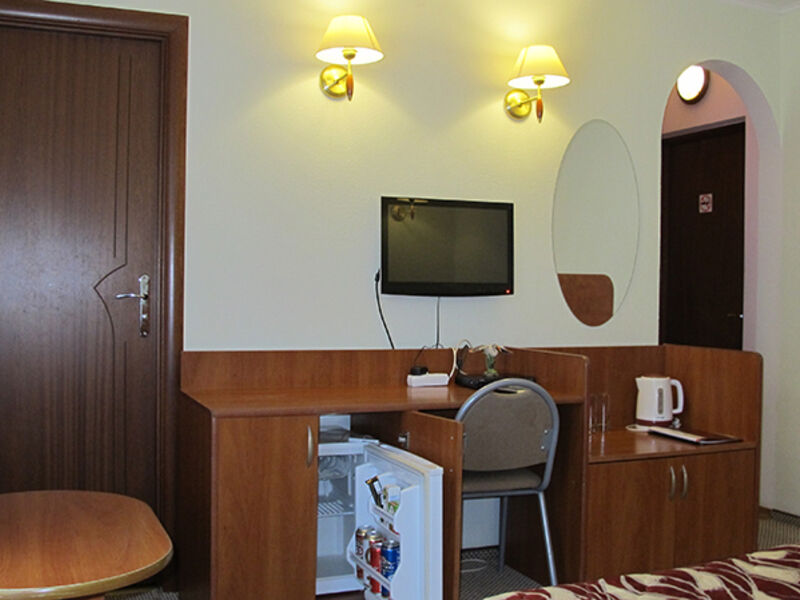 спутниковое телевидение, Wi-Fi, фен, ванная комната, душевая кабина, санузел, пляжные полотенца, две односпальные или большая двуспальная кровать, ортопедический матрас, тумбы, журнальный столик, багажная тумба, зеркало, чайник, унитаз, раковина, ковровое покрытие, отопление, стаканы, стул, туалетные средства, диван-кровать, раскладной диван, телевизор с плоским экраном, мини-холодильник, шкаф-купеВ номере