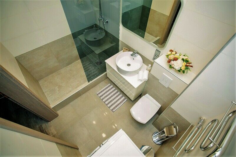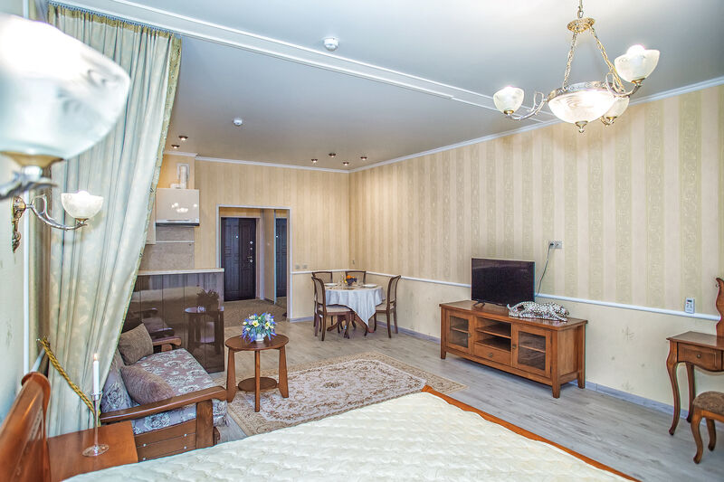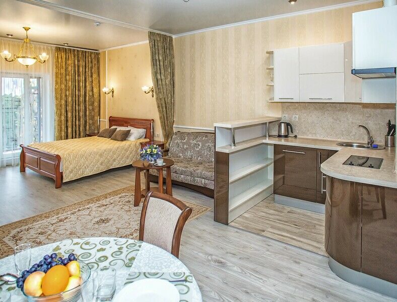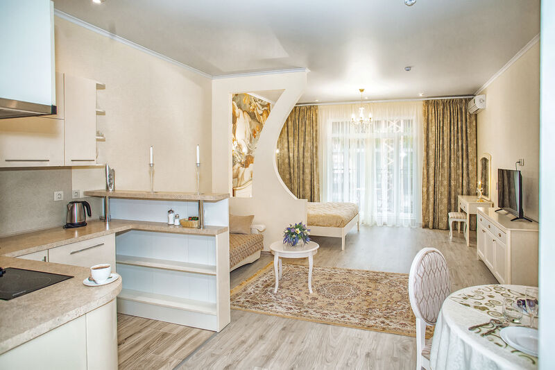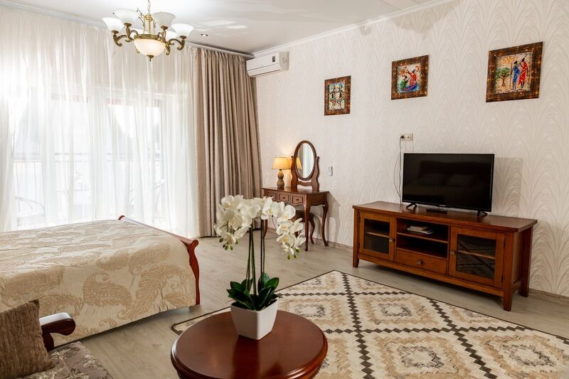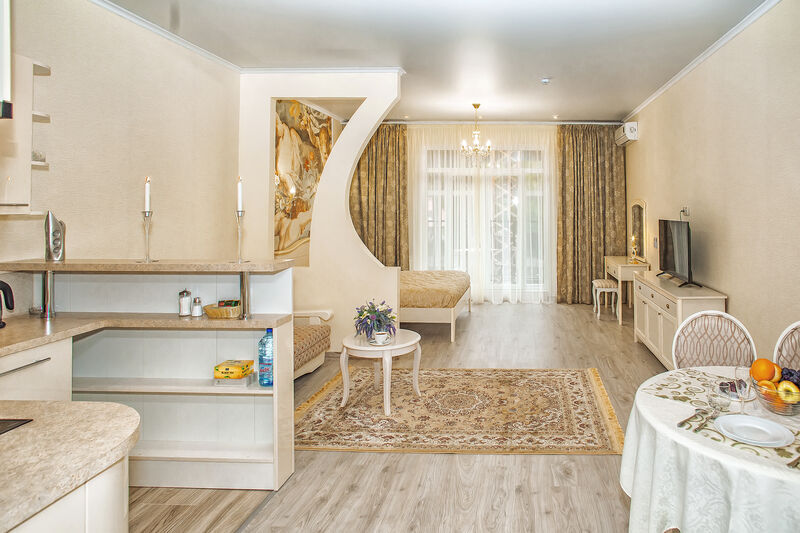 Современное шестиэтажное здание отеля возвышается на одной из главных улиц города, всего в 50 метрах от моря. Гостей ожидают комфортабельные двухместные апартаменты, интересный дизайн комнат выполнен с элементами классического стиля. Все номера оснащены кухней, есть вся необходимая техника, в том числе стиральная машина в ванной комнате. В Апартаментах предусмотрены небольшие уютные меблированные балкончики, с которых открывается вид на город.