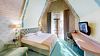 Двухместный номер площадью 27 кв. м. расположен на мансардном этаже. Комфортабельная кровать 180*200, 4 подушки, 2 одеяла и постельное белье из страйп-сатина обеспечат прекрасный сон. В ванной комнате Вы найдете ванную, набор полотенец, мягкие халаты, тапочки, косметические туалетные средства, фен. Номер подойдет для комфортного размещения 1-3 гостей. В данном номере естьвозможность для дополнительного места. Номер расположен на 4 этаже.Услуги и удобства