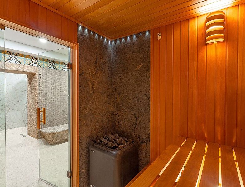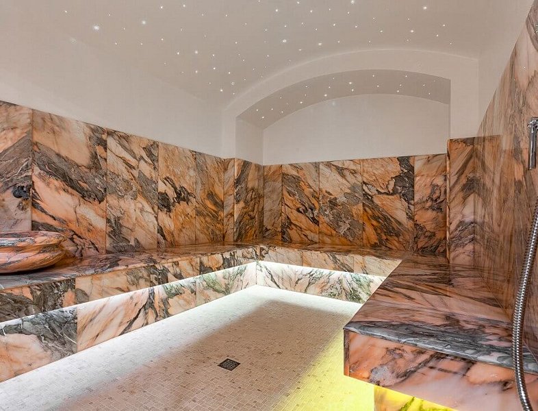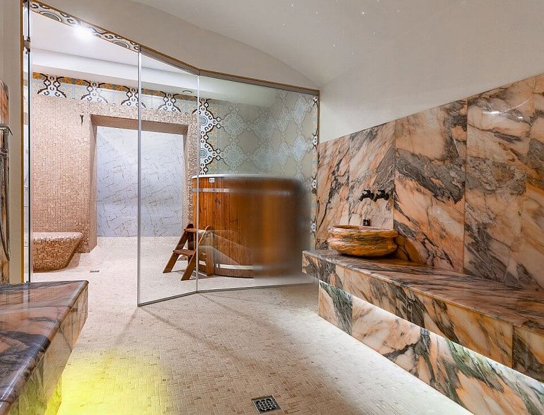 Классический хаммам, отделан саянским мрамором, имеющий два режима работы: турецкий хаммам и римский тепидарий. Основная цель подобной трансформации – обеспечить максимальный комфорт процедуры отдыхающим.