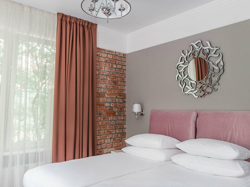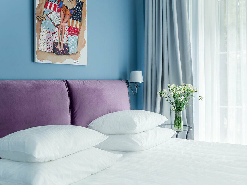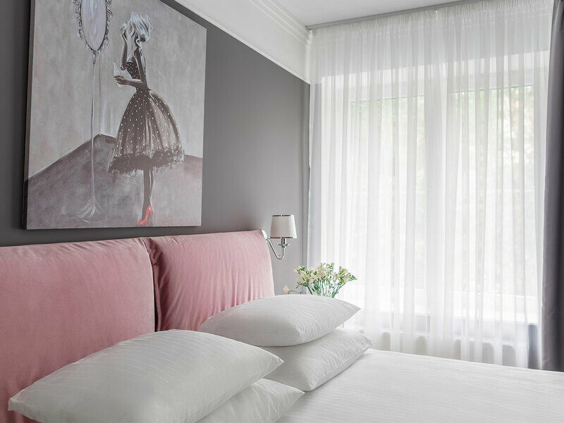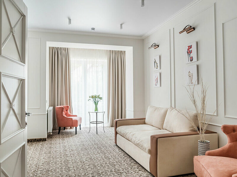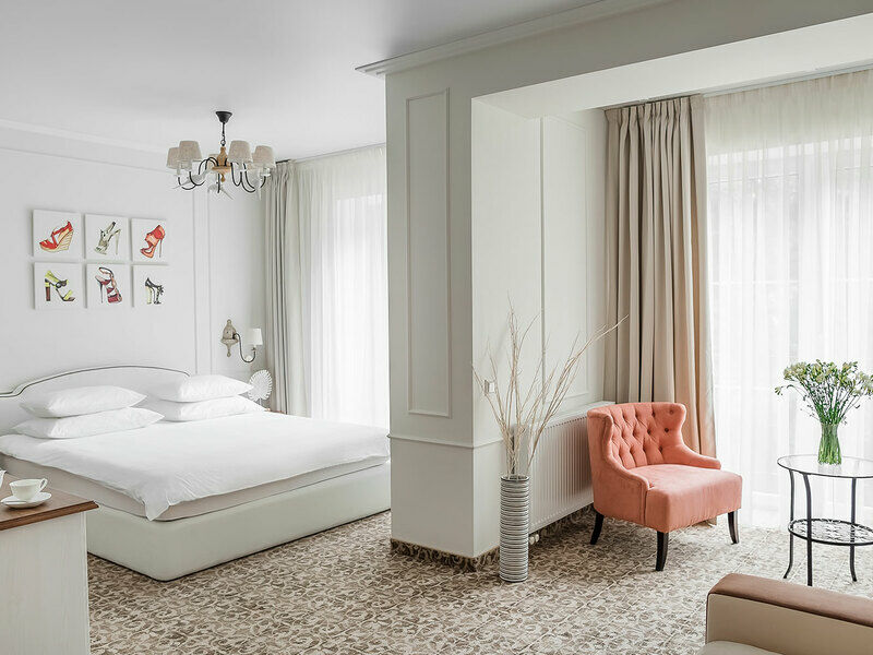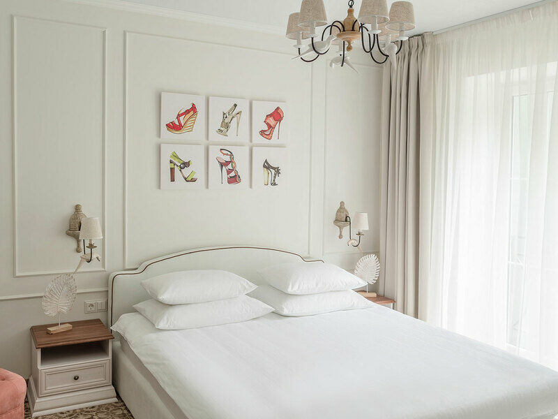 Комфортабельные номера площадью до 40 квадратных метров состоят из гостиной, гардеробной и спальни. Уникальный светлый и просторный интерьер каждого номера дополнен дизайнерской мебелью, зеркалами и оригиналами авторских картин.