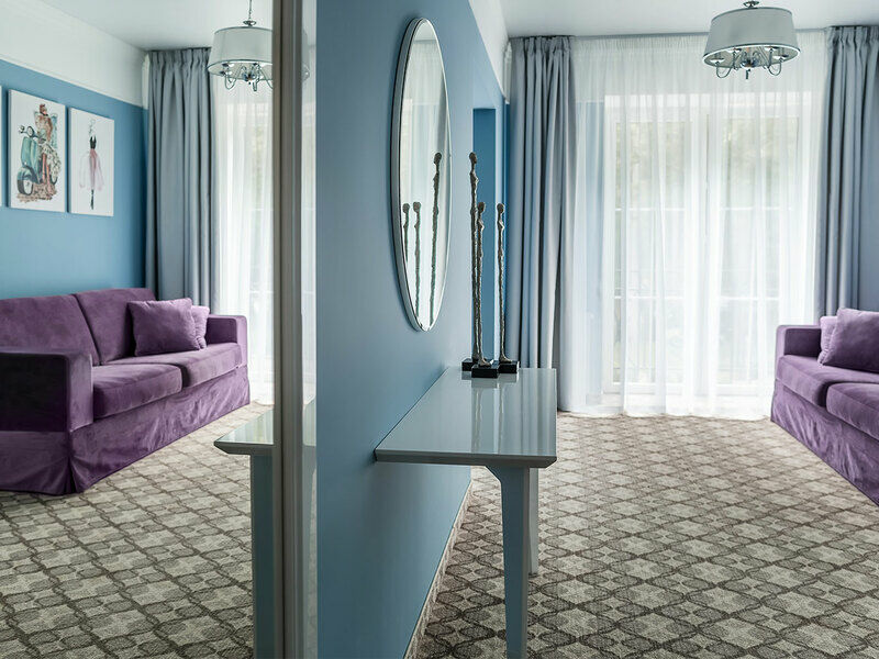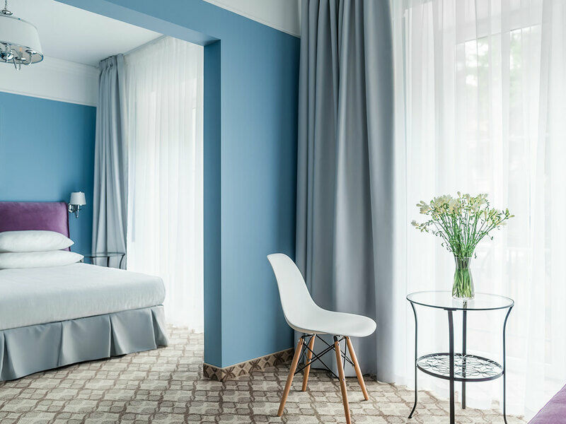 Просторные номера премиум-класса площадью 40 метров с неповторимым дизайном в стиле «французский модерн» и улучшенной планировкой. Номера со спальней, гардеробной и гостиной дополнены комфортной рабочей зоной с диванами и журнальным столиком.