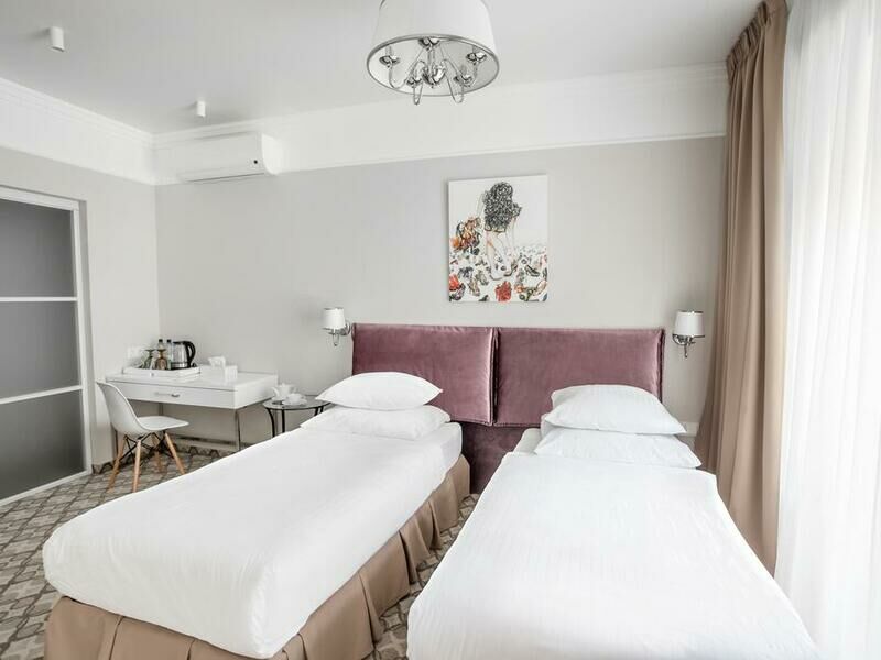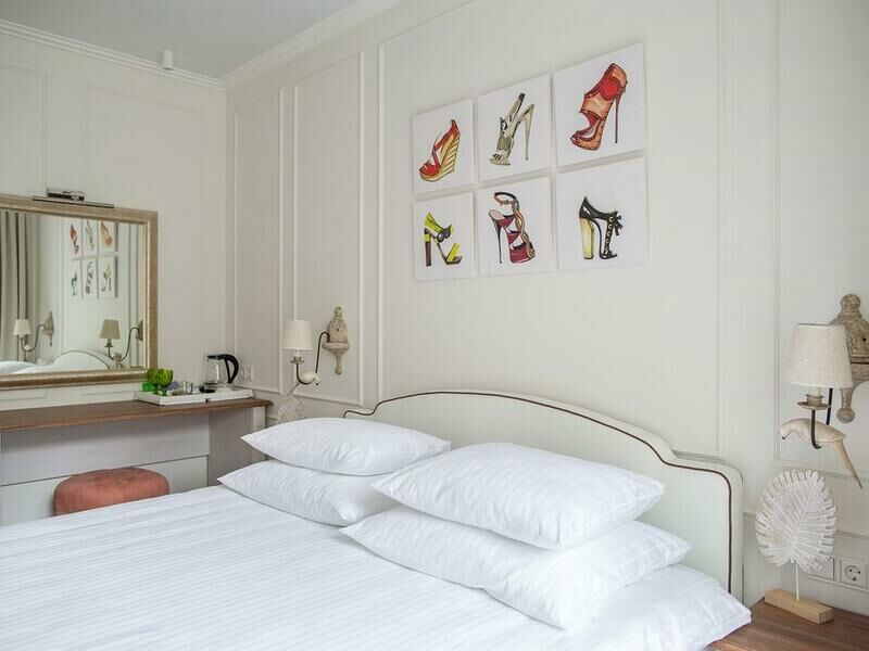 Путешествие с паройЗамените одну официантку и подушки и станете лучшим в России бутик-отелем)Бутик-отель абсолютно соответствует заявленным пяти звёздам. Уют, комфорт, чистота, сервис, завтраки, работа персонала - всё отлично. Из минусов - нет возможности заменить обычную подушку на анатомическую. Ресторан при отеле заслуживает отдельных хвалебных од. Он лучший в городе. Но и цены конечно выше средних. Однако ассортимент и качество блюд оправдывают избранную ценовую политику. В надежде, что менеджмент отеля и ресторана отсматривают отзывы об отеле, напишу о персоналиях. Очень хорошо работают, всегда готовы прийти на помощь клиентам девушки администраторы. Особенно Кира. На завтраках нас обслуживали две девушки. Анна чрезвычайно благожелательна, отзывчива, стремится предвосхищать потребности клиента. Спасибо ей за её труд. А вот сменщица Анны (имя девушки мне не известно, т.к. бейджи тут не приняты) совсем не сервисник. Девушка грубовата, оплату за завтраки готова выбивать как заправский коллектор. До поездки я читала негативные отзывы об организации завтраков в Мадам L. Думаю, проблема в этом конкретном сотруднике. Завтраки великолепные, соотношение цена/качество у них в балансе.) Мы с мужем не смогли осилить два континентальных завтрака и, в течение когда не работает система шведский стол, просто брали один завтрак на двоих. Его нам хватало с лихвой. Благо кофе выдают, не зависимо от количества оплаченных завтраков. А ещё в отеле есть маленькая, но чудесная зона SPA, где приятно отдохнуть после насыщенного дня