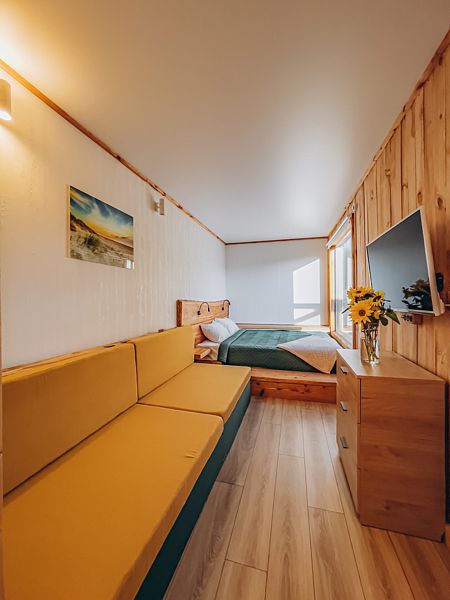 Размещение: двое взрослых на основных и один ребёнок на дополнительном месте.