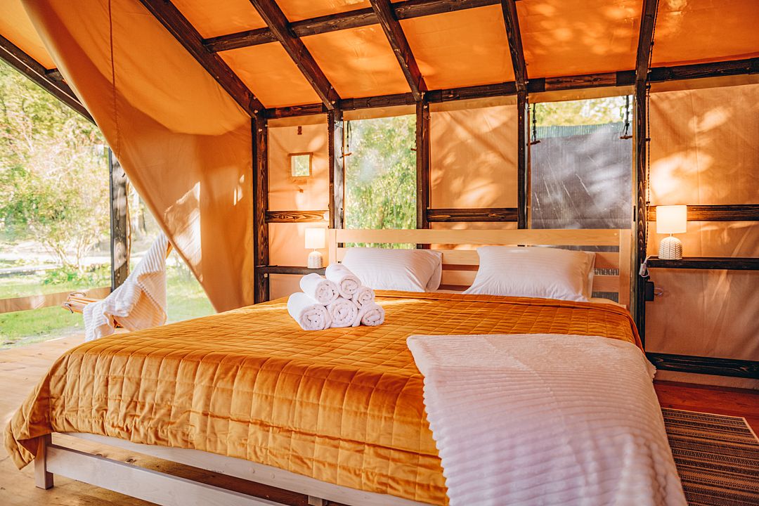 - все дома в глэмпинге новые, выполнены в современном европейском стиле и функционируют с первого сезона.