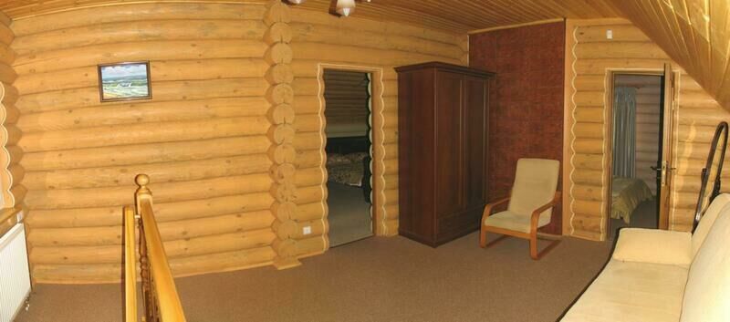 Номерной фонд базы - это девятиместный сруб из сосновых бревен, жилой площадью более 100 кв.м., который сдается как целиком , так и по комнатам.