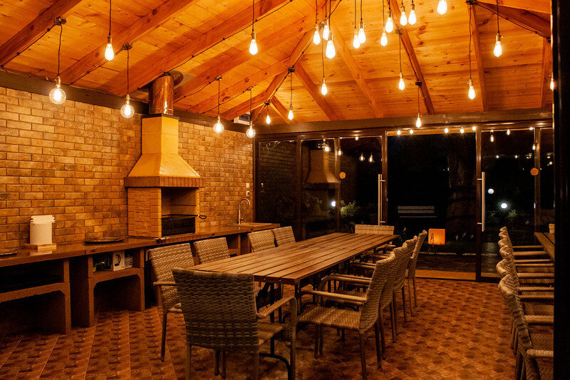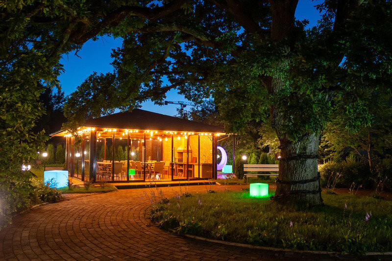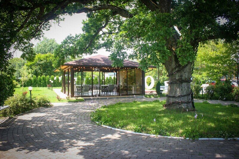 К вашим услугам современная и красивая, стильная и светлая, уютная и функциональная беседка на 20 мест, находящаяся рядом со старинным раскидистым дубом.