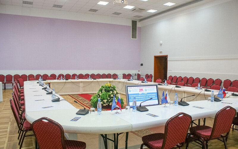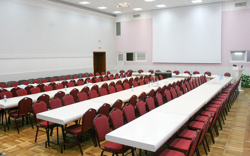 Конференц–зал «Балтика». Вместительность до 60 человек. В стоимость аренды зала входит: мультимедийный проектор, экран, звукоусиливающая аппаратура (4 акустические колонки, усилитель на 800 Вт), микшерский пульт, ручные радиомикрофоны (2 шт), флипчарты, Wi–Fi до 80 Мб/с, презентер, техническое сопровождение мероприятия. Также имеется оборудование для ведения протокольной видео съемки на цифровую FullHD камеру, организации телетрансляции из зала в зал.