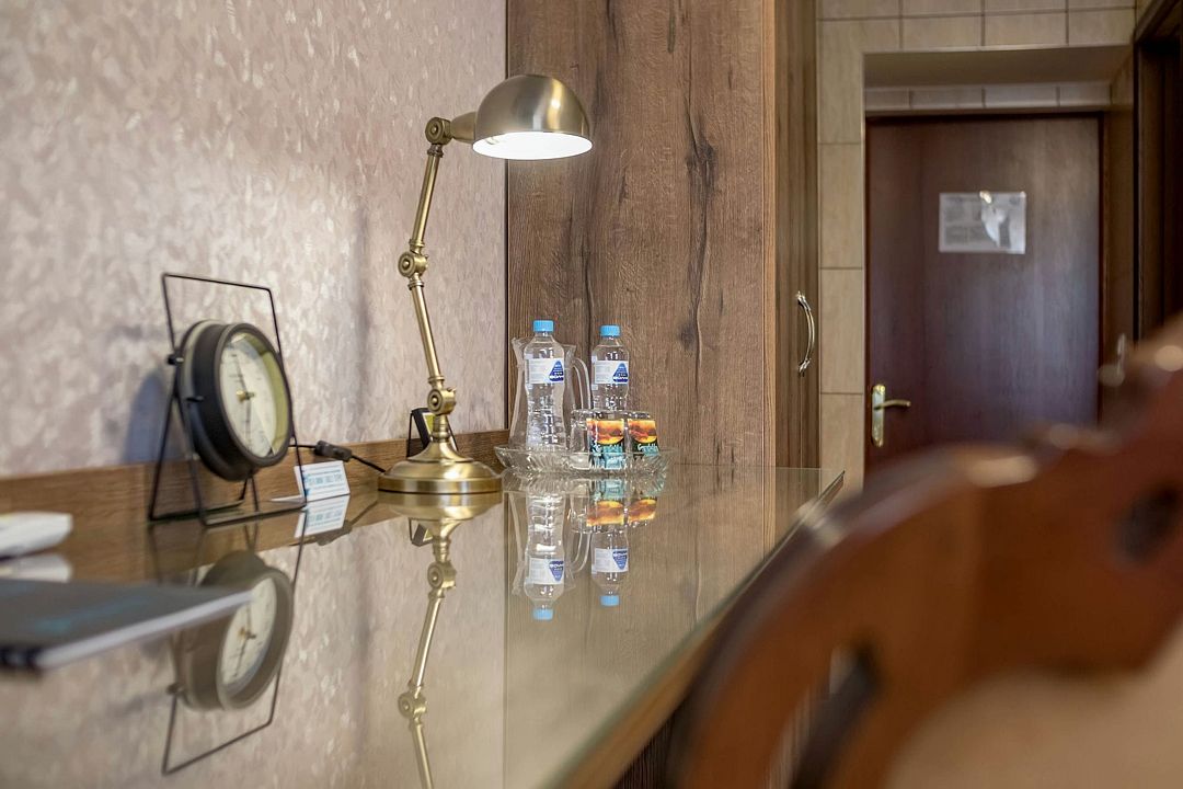 Элегантный просторный трехкомнатный номер, одинаково комфортный как для работы и проведения деловых встреч, так и для отдыха. В номере – гостиная, спальная комнаты, кабинет, два санузла, балкон.