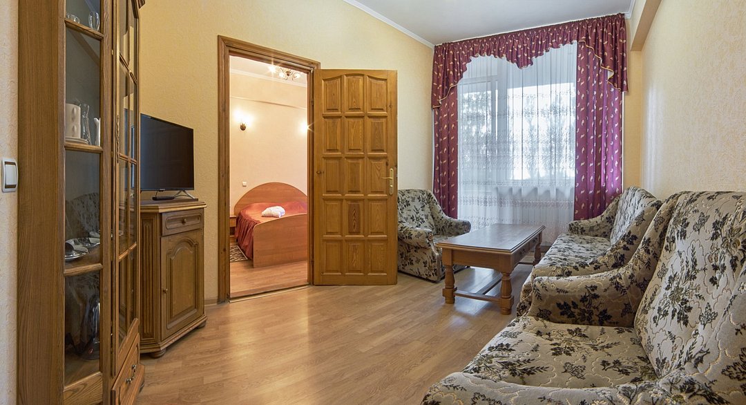 Жилой фонд санатория включает два спальных корпуса: пятиэтажный корпус No1 и трехэтажный корпус No2, расположенные всего в 30 метрах друг от друга. Номера различаются по категориям: от эконом-вариантов до двухуровневых апартаментов. Каждый номер оборудован всем необходимым: мебелью, телевизором, а также санузлом с ванной или душевой кабиной, феном и туалетными принадлежностями.