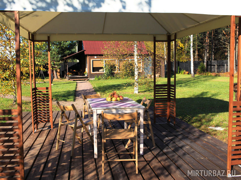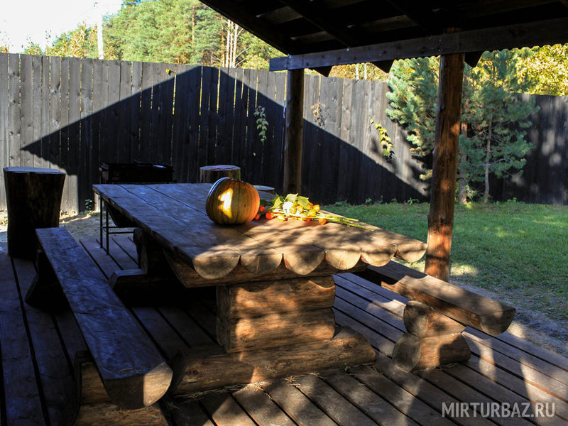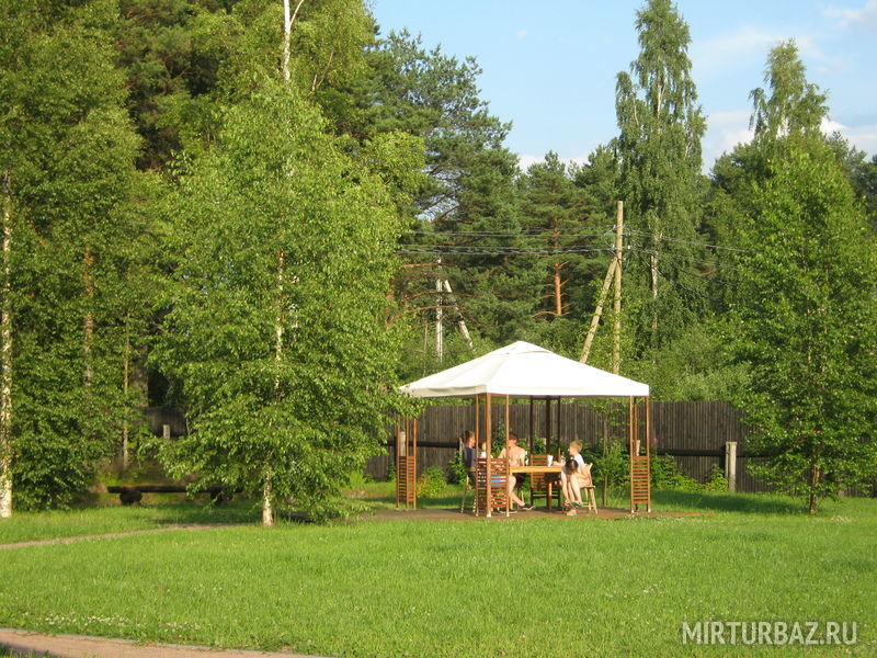 Читать полностьюНа территории базы располагаются две беседки. Южная — легкая невесомая рядом с прудом, и Северная — добротная с мангалом, выполненная в деревенском стиле, с рублеными столом и скамьями, находится рядом с баней, среди сосен.