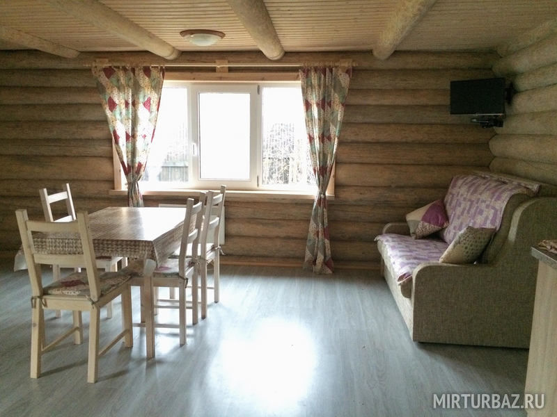 Есть спутниковое TV. Дом полностью благоустроен и готов к приему гостей. В Брусничном могут остановиться 6 человек одновременно, также возможна организация двух дополнительных спальных мест.