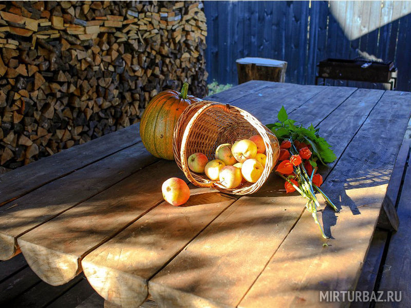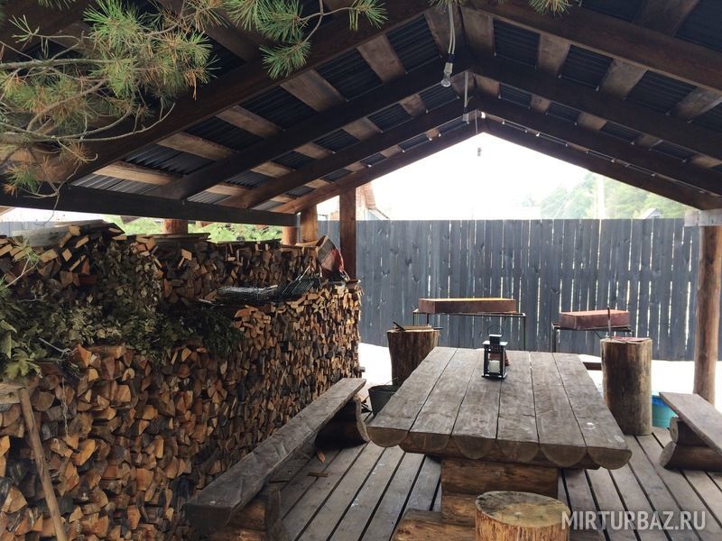 Баня на дровах (до 8 человек) с 12.00 до 23.00 (не менее 3-х часов) — 1000 руб./час. Березовые веники — 200 руб., простыни — 100 руб.