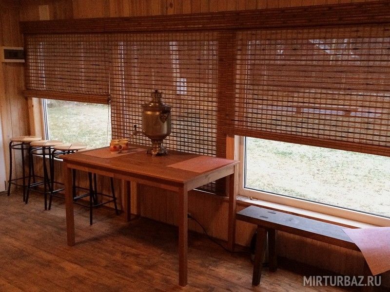 Все помещения отапливаемые, оборудованы стеклопакетами, есть теплый саузлел с душевой кабиной, проведена горячая вода, в наличии варочная панель, чайник, микроволновая печь и холодильник на кухне, стиральная машина, посуда, постельное белье и одеяла, домашние тапочки. С собой нужно взять мыло и полотенца. На втором этаже — бильярд и настольный теннис.