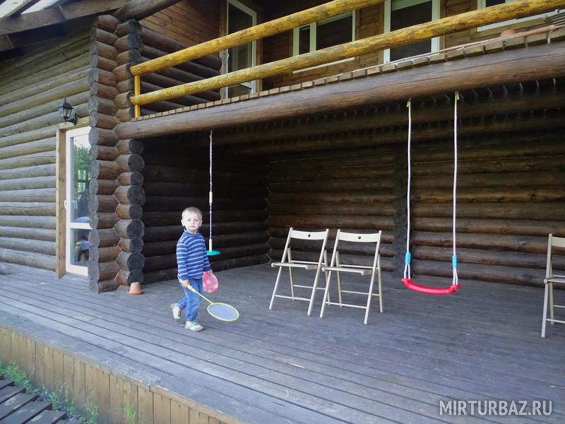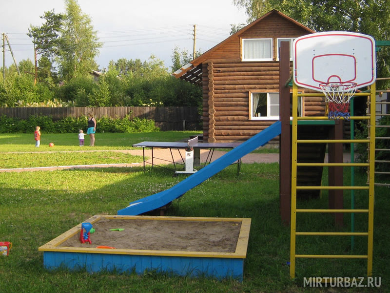 На базе в свободном доступе есть спортивный инвентарь: бадминтон, волейбольный мяч, санки, лыжи, коньки, хоккейные клюшки и другое.