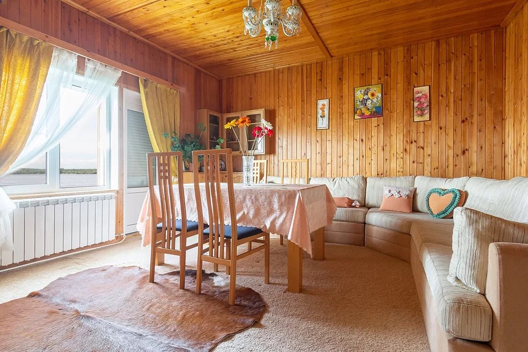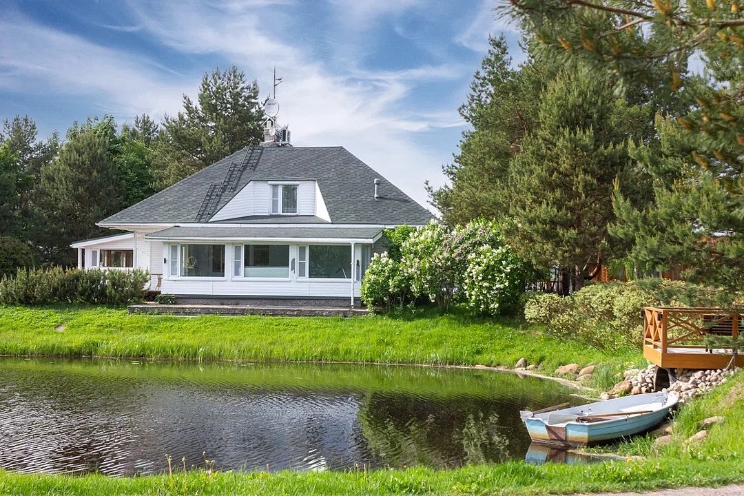 Просторный дом в живописном месте на пруду, с сауной и бассейном, которые можно арендовать дополнительно, — идеальное место для рыбалки и отдыха! Дом площадью сто шестьдесят квадратных метров на берегу реки подходит для отдыха компании до восьми гостей и предлагает все необходимое для незабываемых выходных на природе.