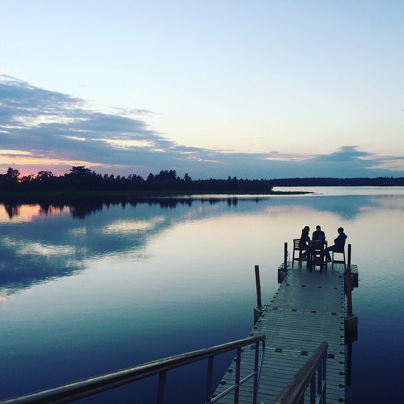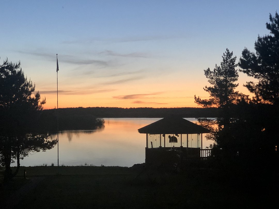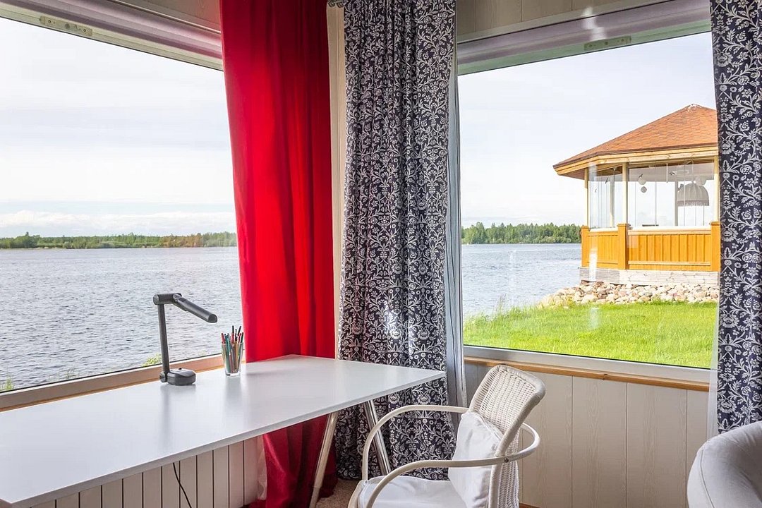 Рыбалка в этих краях — особое удовольствие: с пирса или арендованной лодки можно поймать жереха, щуку, судака и даже лосося. Для маленьких гостей подготовлены детская площадка, батут и качели, а в огороде растет зелень и мята. Любители природы смогут отправиться в близлежащие леса за грибами или посетить исторические монастыри и живописные эко-тропы.